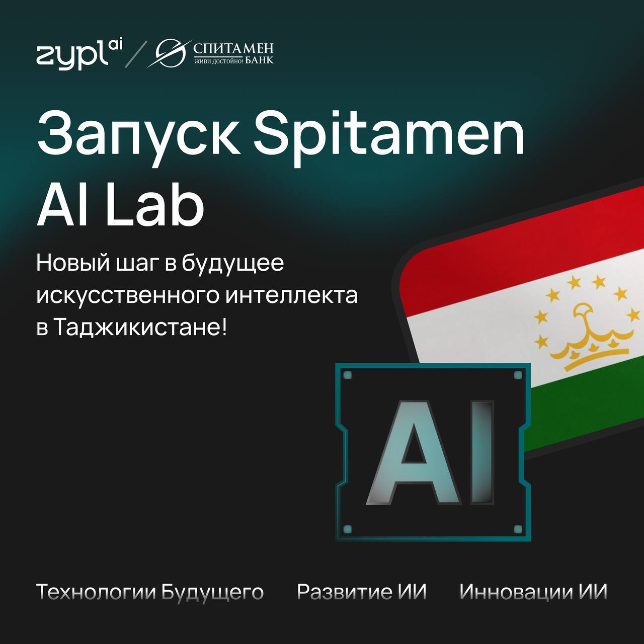 On September 12, 2024, Spitamen Bank and zypl.ai signed an agreement to establish Spitamen AI Lab, a unique platform for developing cutting-edge artificial intelligence technologies in Tajikistan.